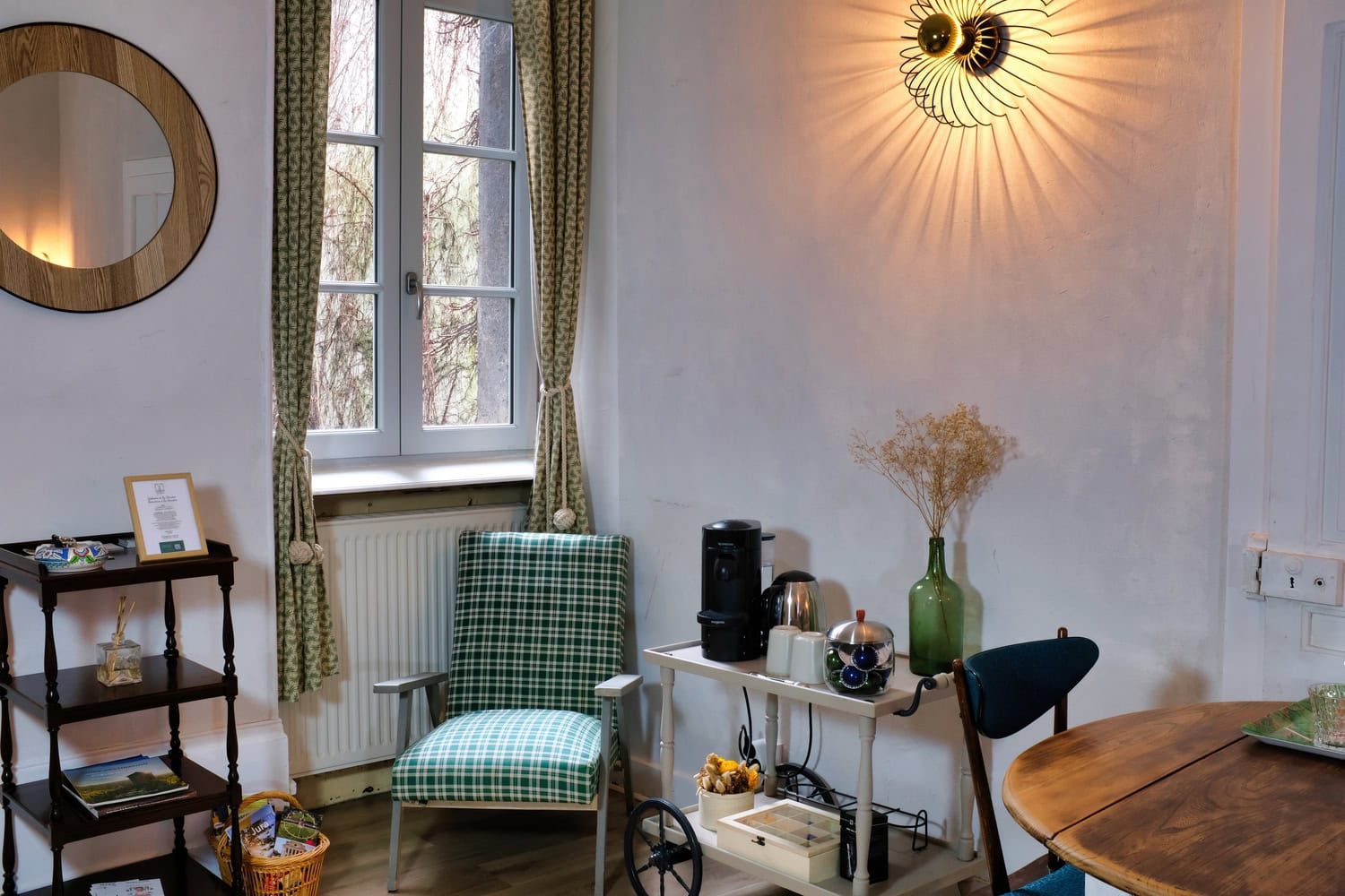 Bienvenue à La Verrière, une chambre d’hôtes de charme située au cœur de Poligny, dans le Jura. Installée dans un hôtel particulier du XVIᵉ siècle, cette suite élégante de 45 m² offre une expérience authentique et confortable pour deux personnes, avec la possibilité d’accueillir un enfant en bas âge.
