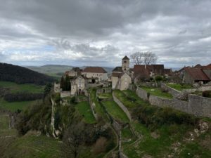 Perché sur un éperon rocheux, Château-Chalon est sans doute l’un des villages les plus célèbres du Jura. Classé parmi les “Plus Beaux Villages de France”, il offre une vue spectaculaire sur les vignobles environnants et la vallée de la Seille.